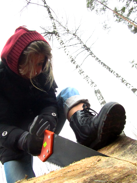 One day we decided to make my mum's cat a fancy scratching device - it took us about half an hour to saw off that piece with our miserable saw :-):