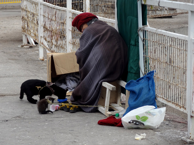 It was the first time we saw a homeless person with cats - just like we thought, it turned out to be a woman:
