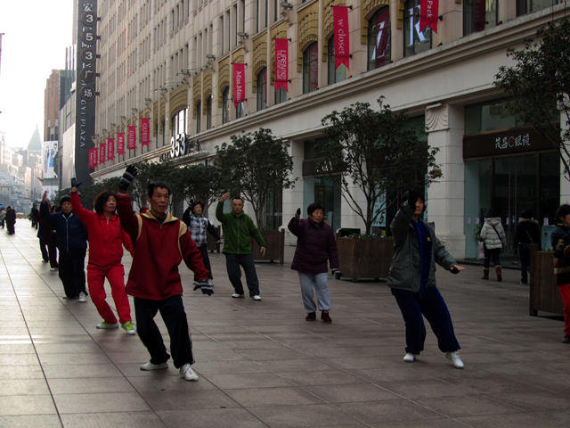 Next day was January 3rd. That morning we left Beijing for Shanghai to spend there the last four days Jordi's mum had in China. On the first one we first paid a visit to the Russian Embassy which was closed and would remain closed till Janruary 12th. (It turns out that this Consulate which works only 3 days a week during normal times, also celebrates the whole set of Russian and Chinese festivals and for some reason they do it for two weeks longer than in either Russia or China). The rest of the first day we walked the ever-busy area of the Bund, then went to see the Jing'an Temple, later took a metro to Pudong area and after watching an amazing sunset from the elevated pathways near the Oriental Pearl, went to see Shanghai in twi- and neon light from our favourite city-watching spot - Cloud 9 bar in Jin Mao Tower.